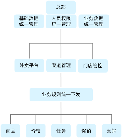 Headquarters personnel manage system settings, master data, business documents, and queries/reports for membership benefits, store POS, ordering and supply, etc.