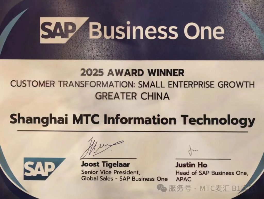 Following our recognition in 2023 and 2024, MTC once again stood out among numerous SAP partners across the Asia-Pacific region, earning dual honors: Following our recognition in 2023 and 2024, MTC once again stood out among numerous SAP partners across the Asia-Pacific region, earning dual honors: Customer Transformation: Small Enterprise (Greater China) and Customer Transformation: Small Enterprise Growth (Greater China). These accolades not only demonstrate MTC’s exceptional performance within SAP’s APAC ecosystem but also reflect our sustained growth driven by deep industry expertise and global delivery capabilities.